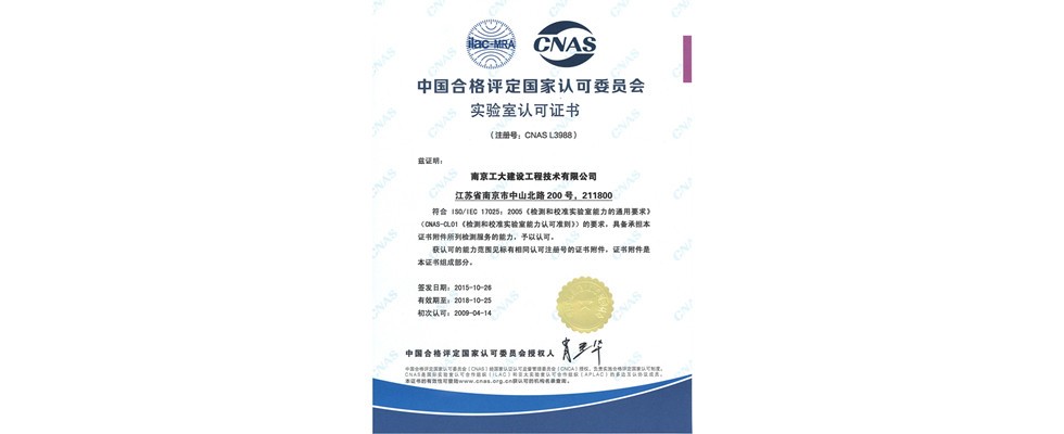 CNAS实验室认可证书