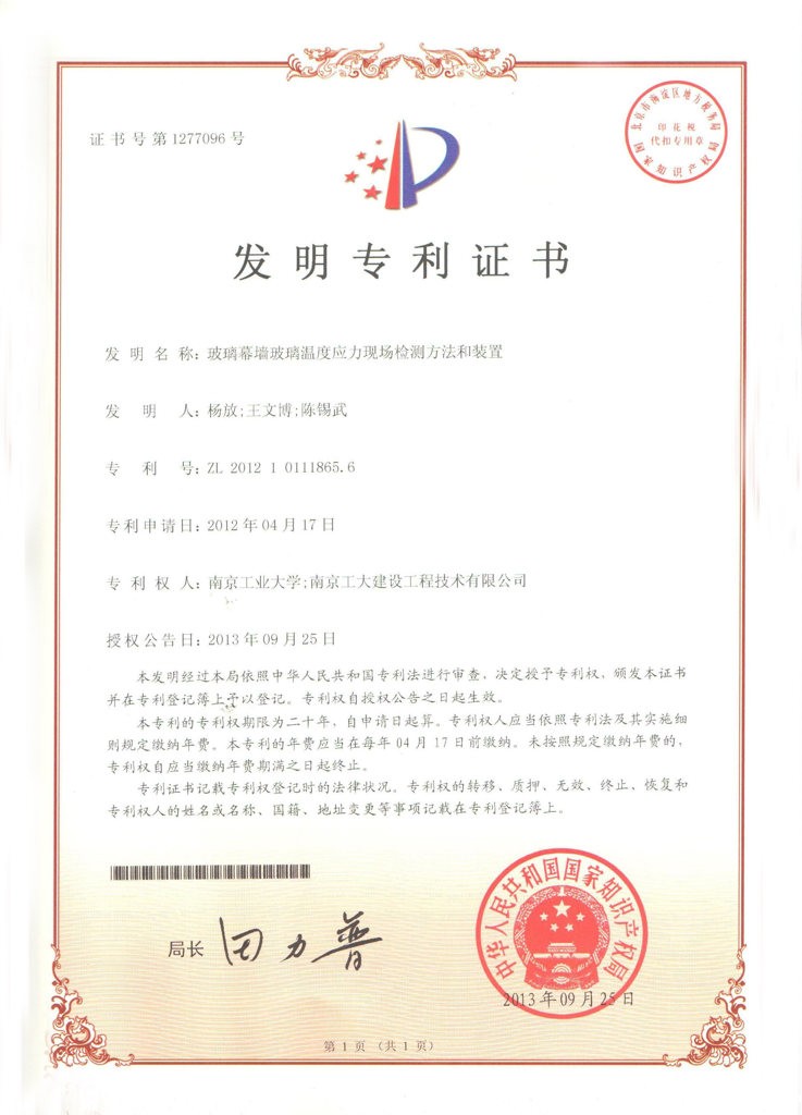 发明—玻璃幕墙玻璃温度应力现场检测方法和装置