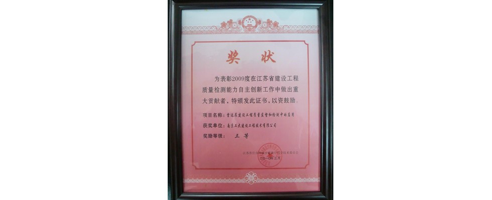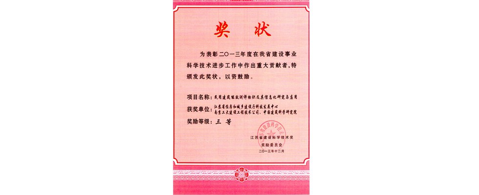 江苏省建设科学技术奖三等奖