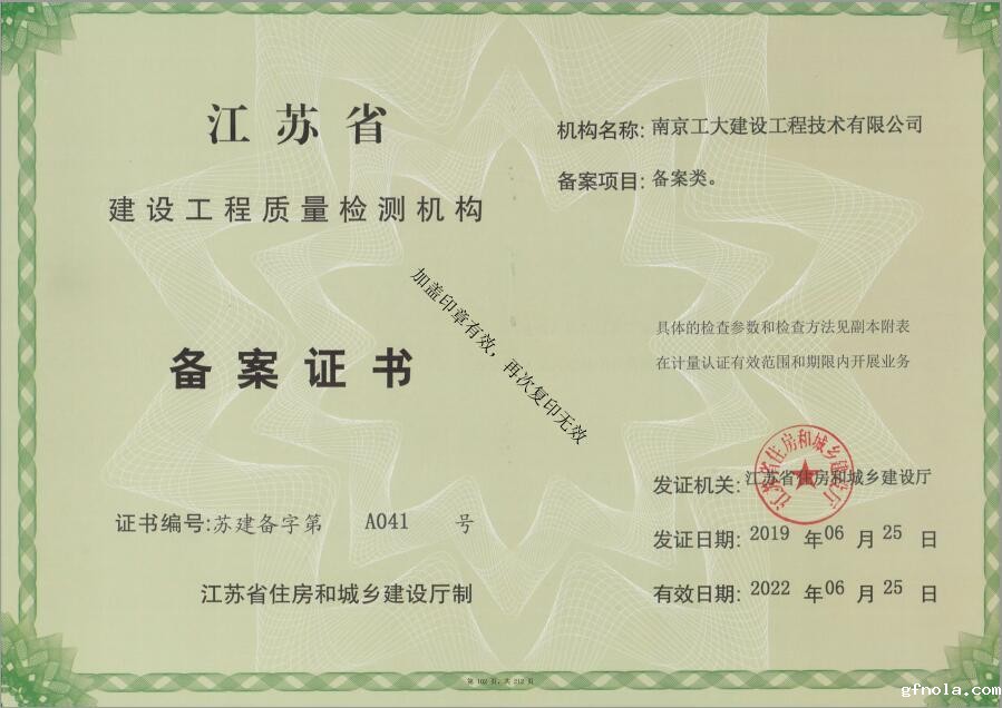 建设工程质量检测备案证书