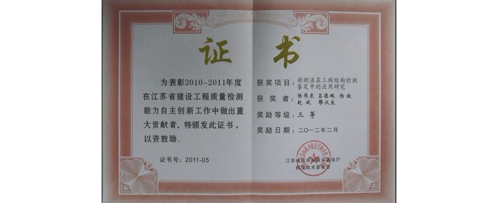 江苏省建设工程质量检测技术创新团队一等奖
